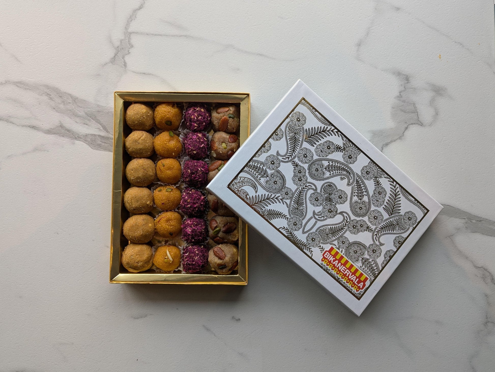(Please note, laddu and box selection may vary depending on availability. Images are for premium box style reference only and product may vary)